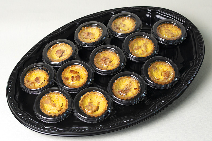 卵と生クリームをたっぷり使用した食べやすい一口サイズのタルトキッシュ盛り合わせ。