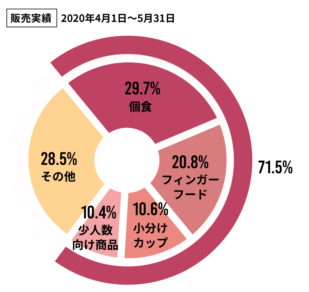 2020年4月1日〜5月31日の販売実績のうち71%を、弁当などの個食、