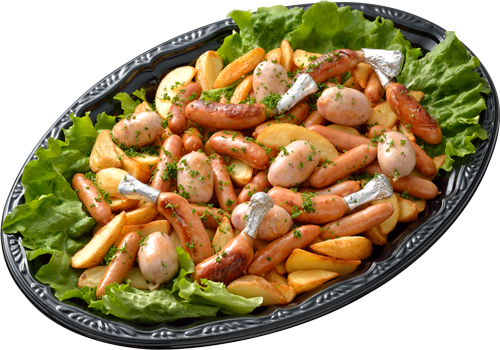 3種類のソーセージにたっぷりのフライドポテト。手を伸ばしやすいお手軽感の中に