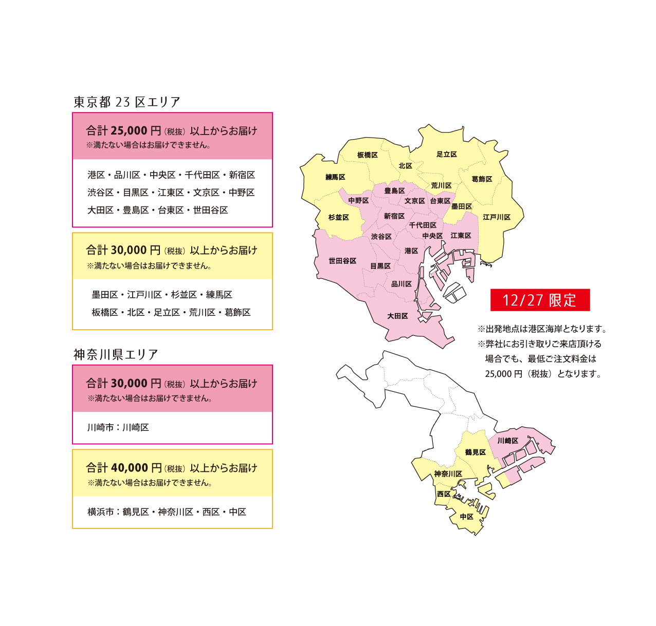■お届けエリア エリアによって最低ご注文金額を設定させて頂いております。